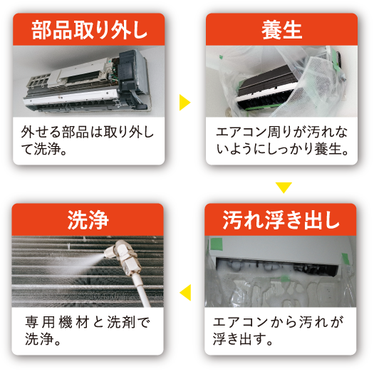 エアコンクリーニングの流れ