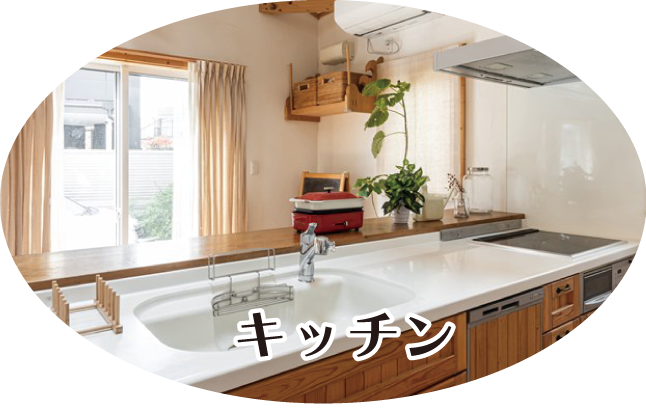 シンク周り、コンロ周辺、ダイニングテーブル、食器棚、壁や床など